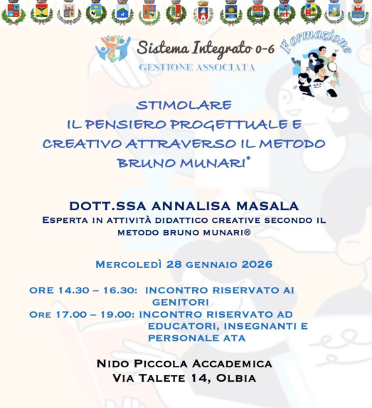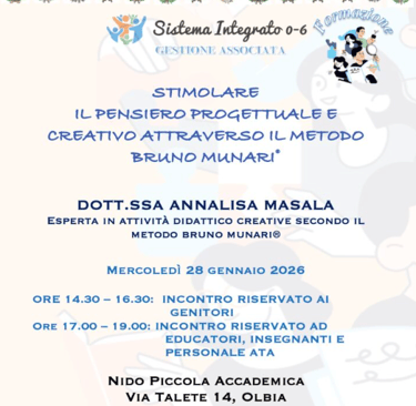Incontri di formazione al Nido Piccola Accademia di Olbia per genitori, educatori, insegnanti e personale ATA con la dott.ssa Annalisa Masala. Mercoledì 28 gennaio 2026
